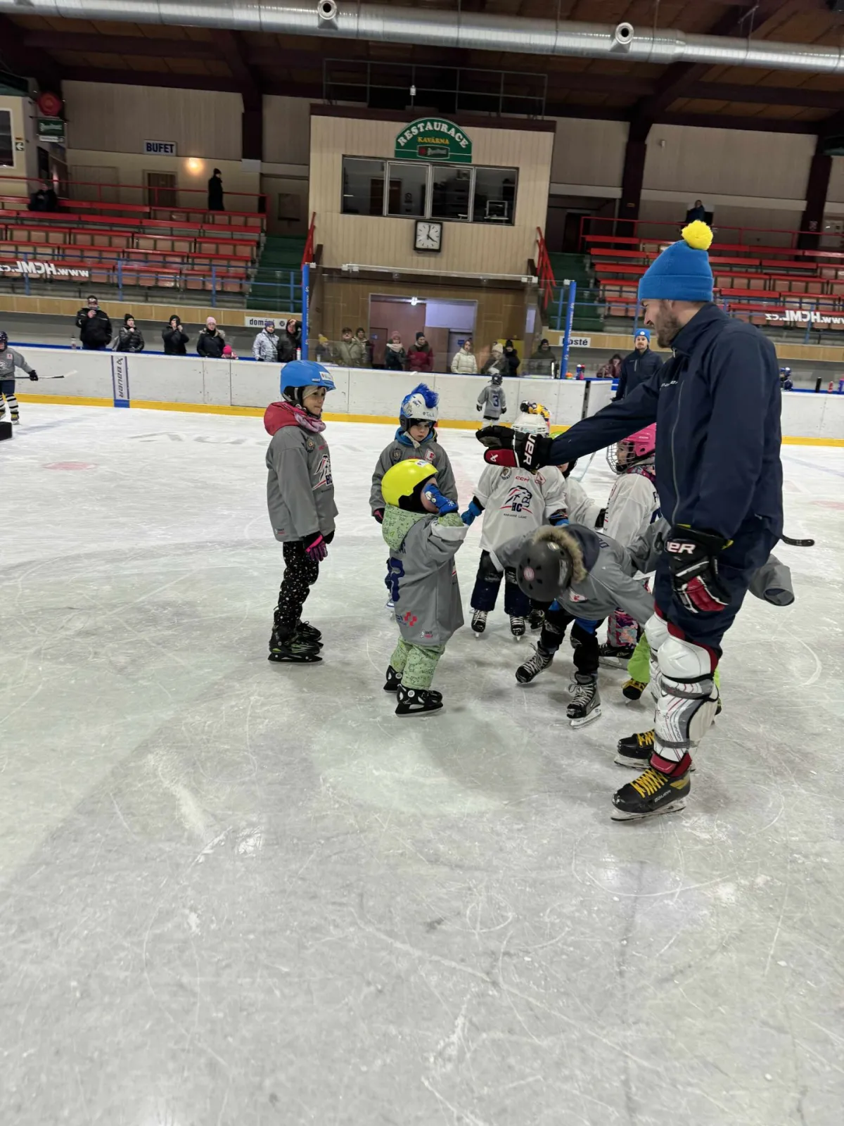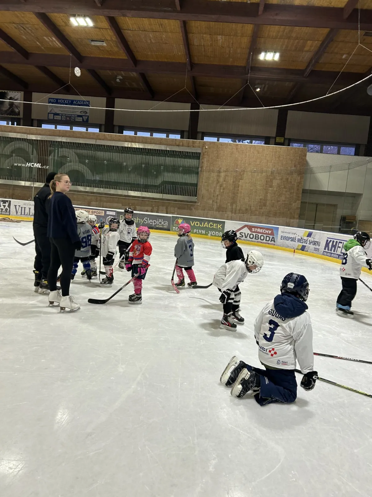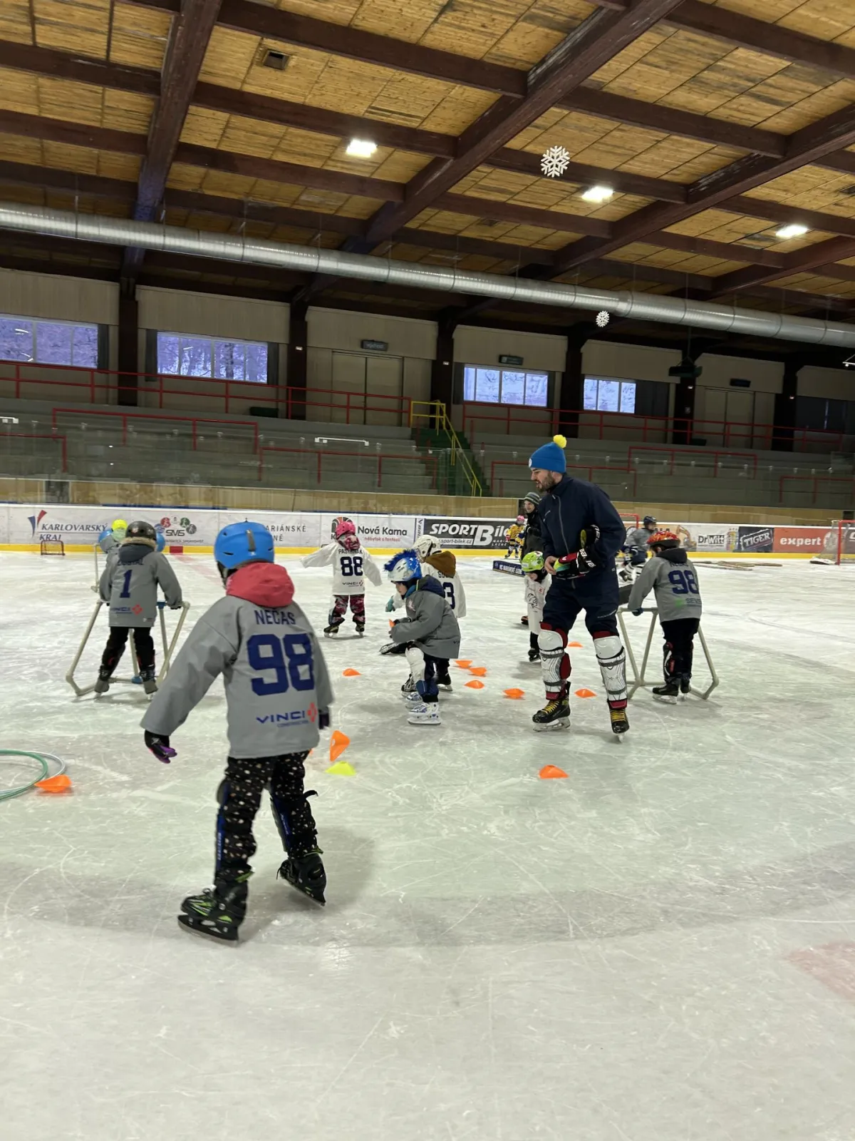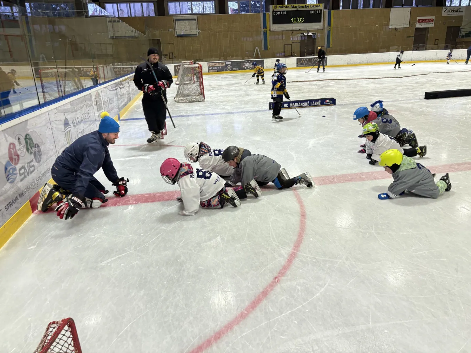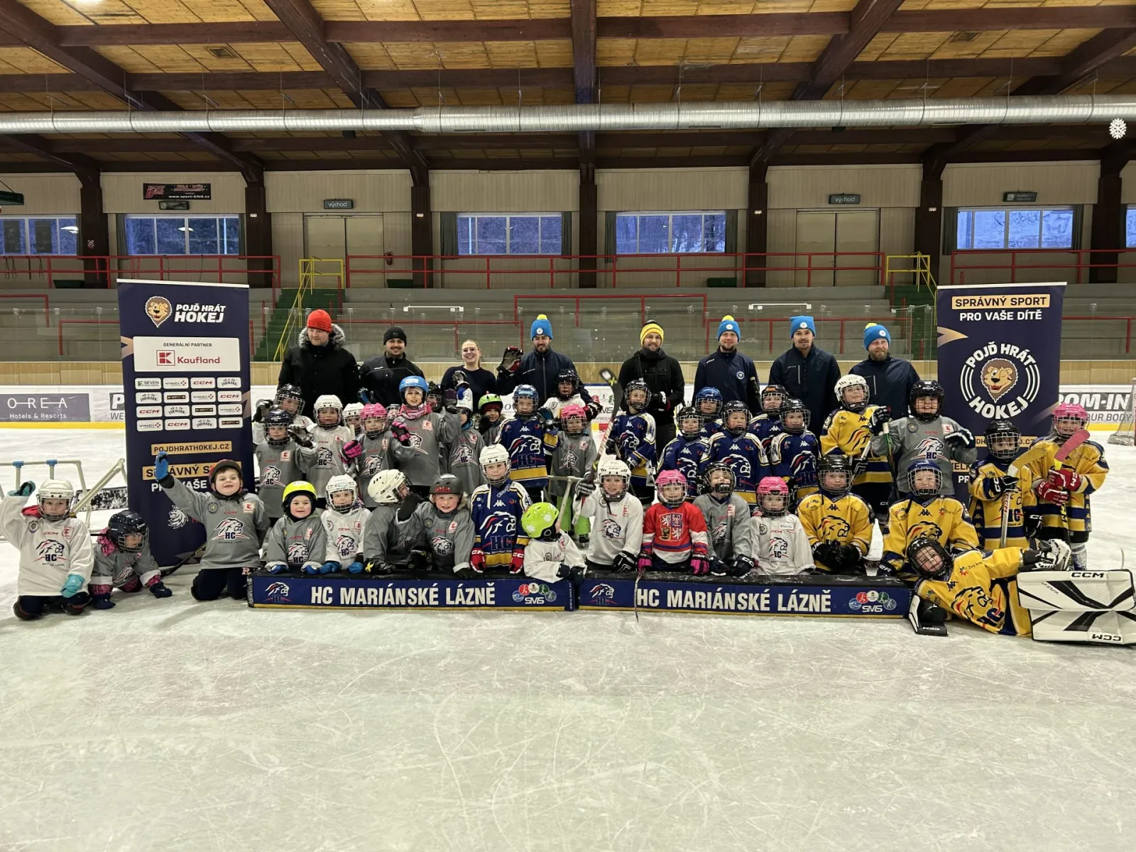 Dnes odpoledne se na našem zimním stadionu konala oblíbená akce Pojď hrát hokej, kterou pořádá HC Mariánské Lázně ve spolupráci s Českým hokejem v rámci Týdne hokeje. Děti ve věku od cca 4 do 8 let měly jedinečnou příležitost vyzkoušet si lední hokej a získat první zkušenosti s bruslením i hokejovými dovednostmi.